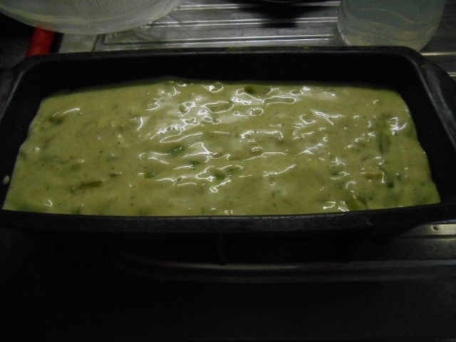 Ajouter les oeufs,le parmesan,le basilic,persil mixer 40 sec/Vit 8 Verser dans un plat et ajouter les courgettes cuites il ne doit plus rester d' eau de cuisson. Bien mélanger. Verser dans un moule à cake.