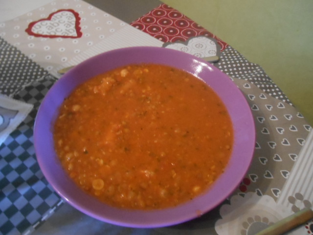 Versez la farine, 200ge d' eau et le concentré de tomates dans le bol, mixer 10 sec Vit 5 débarrasser le bol. Mettre les tomates, l'oignon, la gousse d'ail,la coriandre,le persil dans le bol, hachez 7 sec Vit 7 Ajoutez la viande, les pois chiches, les épices et 650 gr d' eau, cuire 20' 100° Vit cuillière. Ajoutez les lentilles et cuire 25' 100° Vit cuillière. Ajoutez le mélange farine-tomate, mélanger 15 sec Vit 1 et faire cuire 10' 100° Vit cuillière. Ajouter le jus de citron.