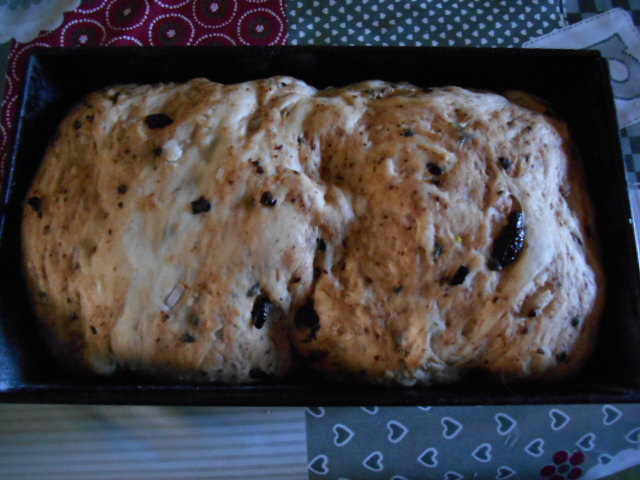150 gr d'eau 40 gr d'huile d'olive 15 gr de levure fraîche 350 gr de farine 5 gr de sel 85 gr de feta 25 gr échalote 50 gr d'olives noirs dénoyautées Verser l'eau,l'huile d'olive et la levure fraîche dans le bol programmer 1'30/37°/Vit 2 Ajouter la farine,le sel,pétrire 3' en mode épi Ajouter les olives,et dés de feta,échalote coupée finement et pétrir 30 sec en épi avec la spatule Vider le bol sur un peu de farine et lui donner une forme Déposer dans une platine pour pain bien huillée et farinée