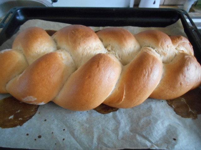 Laisser pousser. Préchauffer le four à 180° Badigeonner le pain de lait avec un pinceau.Cuire 30 à 40' |