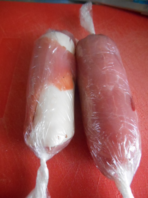 2 escalopes de veau 2 tranches de jambon Serrano 4 tranches de fromage Provologne Sel, poivre Film alimentaire