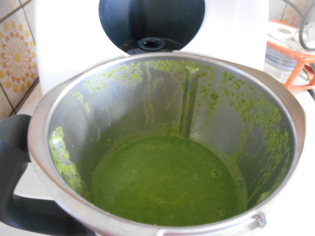 Bien laver et essorer les fanes Mettre tout dans le bol 10 sec/Vit 6 Racler les parois et remettre plusieurs fois 10 sec/Vit 4 Bon apéro
