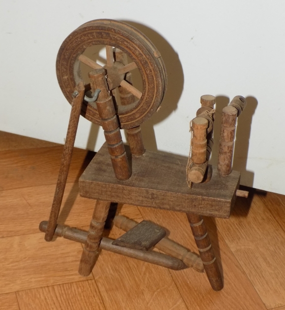Un canon, il n'est pas à la taille des poupées mais j'ai toujours rêver d'avoir un canon comme ça en déco. A la base, c'est un briquet (le canon peut se retirer du socle ^^) Et un magnifique Rouet qui tourne vraiment ! :D