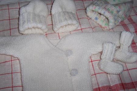 L'ensemble complet: brassière, pantalon, bonnet et chaussons, toujours pour les Prémas