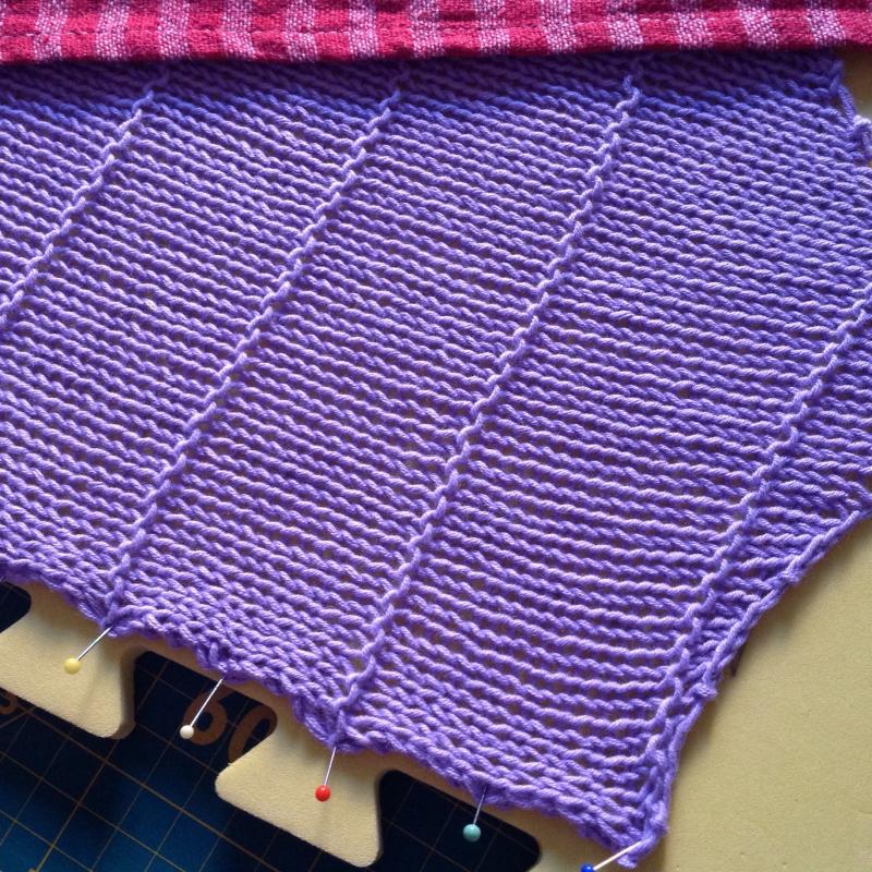 Epingler le carré tricoté aux 4 angles, puis tout le tour... Recouvrir avec un mouchoir (ou une serviette) mouillé et légèrement essoré.