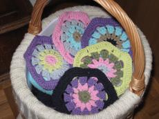 J'aime beaucoup les paniers...mais quant il s'agit d'y entreposer tricot et pelotes de laine... il faut impérativement les doubler afin que les fils ne s'accrochent pas à l'osier ! j'ai donc utilisé mes premiers granny pour garnir celui-ci à ma façon !