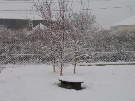 Tout d'abord les cygnes qui attendent leurs géraniums ou pétunias de l'été Le chaudron avec mes petites fleurs bleues. Normalement elles ne gèlent pas mais là...!!! Le descente du garage. |