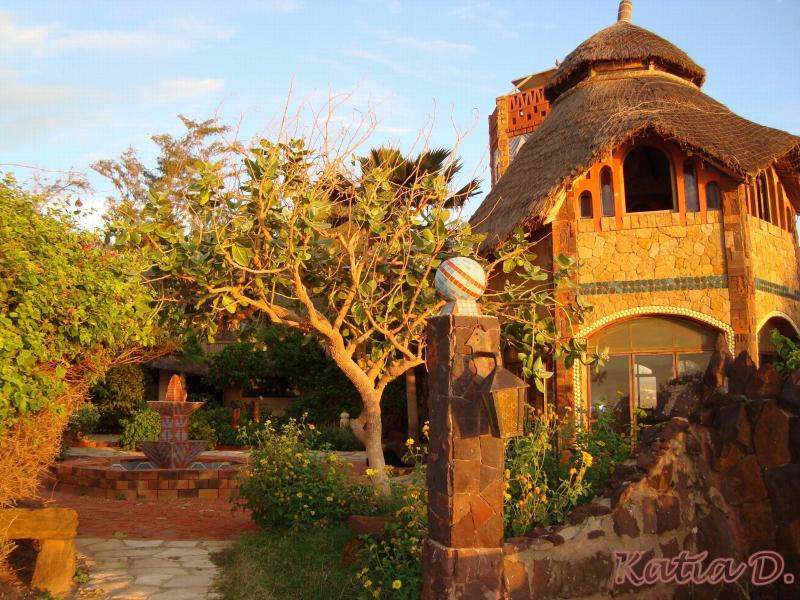 Je pars donc à la découverte des petits chemins autour de mon village, accompagnée de mon fidel Sultan. Au loin, j'apperçois une étrange maison. Je me rapproche donc et je découvre un édifice surprenant que je photographie. En rentrant chez moi, je m'empresse de lancer une recherche internet. Il s'agit d'une maison eco dôme qui avait été construite à la périphérie de mon village pour une phase test en 2009. J'en conclu donc que cette phase n'a jamais aboutie et c'est bien dommage. Ici c'est le grand model de 10 pièces, parfaitement adapté à la famille sénégalaise qui est nombreuse. Cette maison est entièrement faite avec des sacs de terre et est resistante aux séismes et aux inondations et elle est 50% moins chère qu'une construction " normale". |