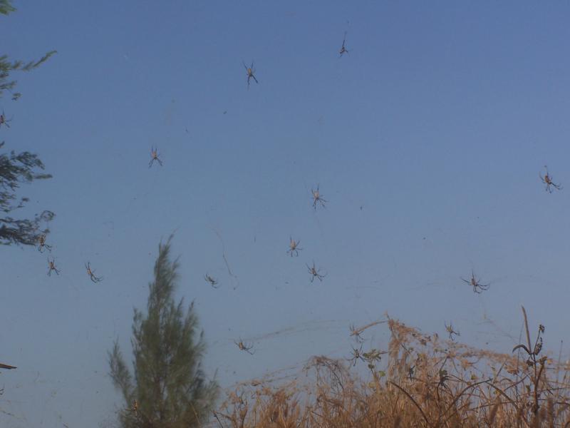 Sur le chemin, entre deux poteaux éléctrique, j'apperçois au loin pleins de petits points semblant flotter dans l'air..; Mais qu'est-ce donc ??? Je me rapproche et .....