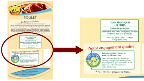 Toutes les caractéristiques certifiées des volailles, pour la marque Autour de Lise, sont inscrites au dos de la barquette.