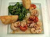 je propose d'ajouter de la roquette pour mélanger avec la mâche et des grosses crevettes aux coquilles st-jacques! |